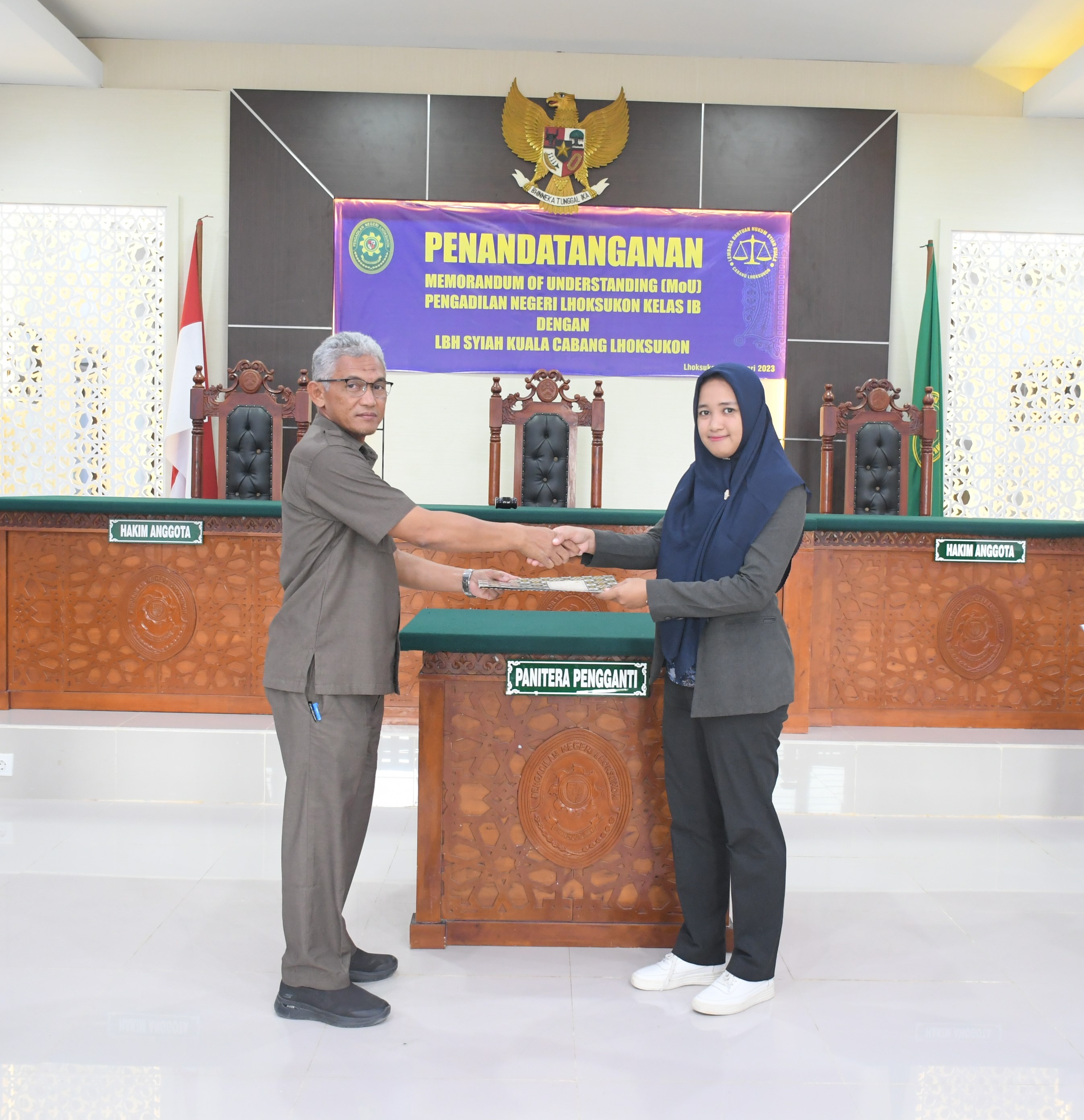 PENANDATANGANAN MEMORANDUM OF UNDERSTANDING (MoU) PENGADILAN NEGERI LHOKSUKON DENGAN LBH SYIAH KUALA CABANG LHOKSUKON