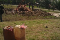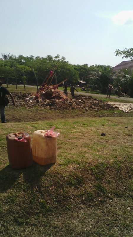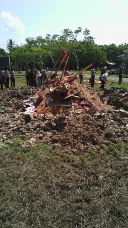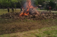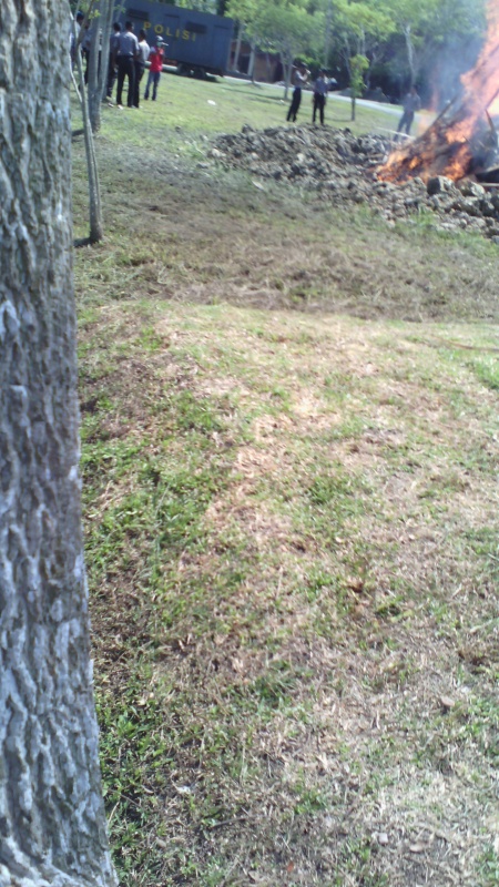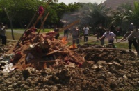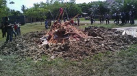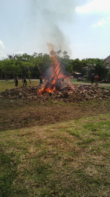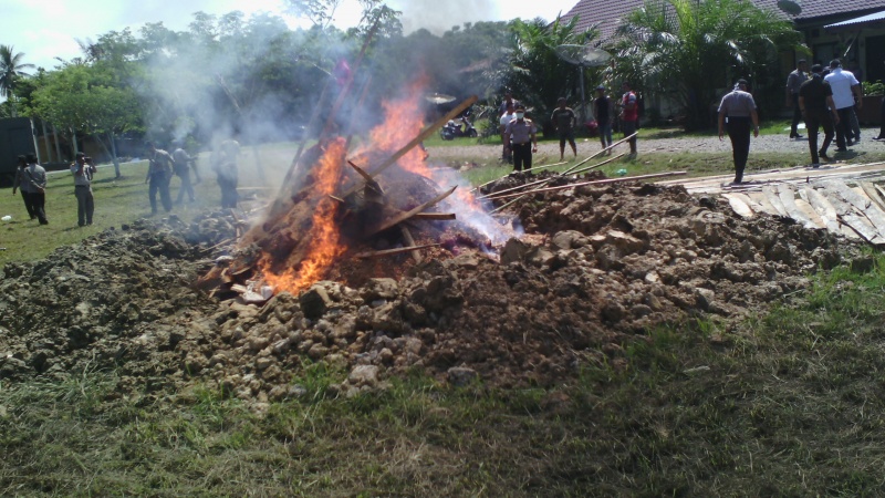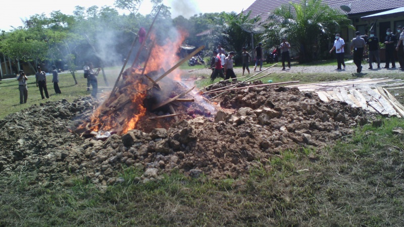 Pemusnahan bawang merah ilegal ini dilakukan dengan cara dibakar.