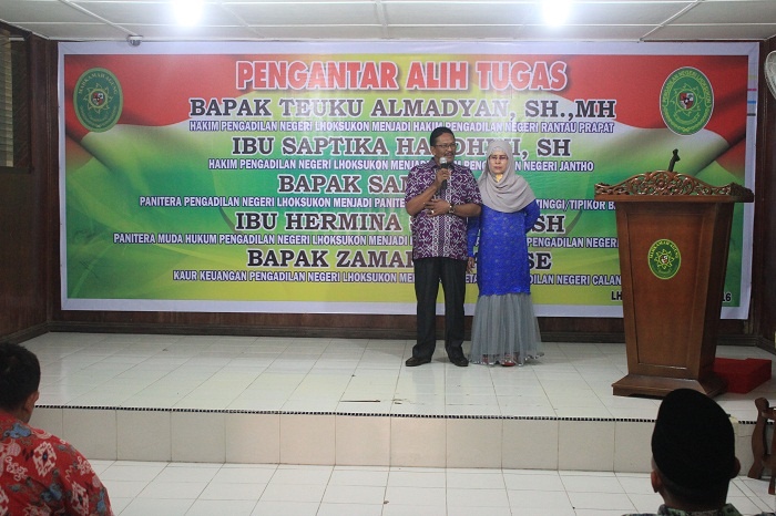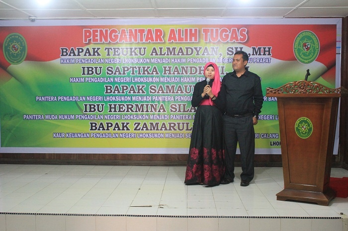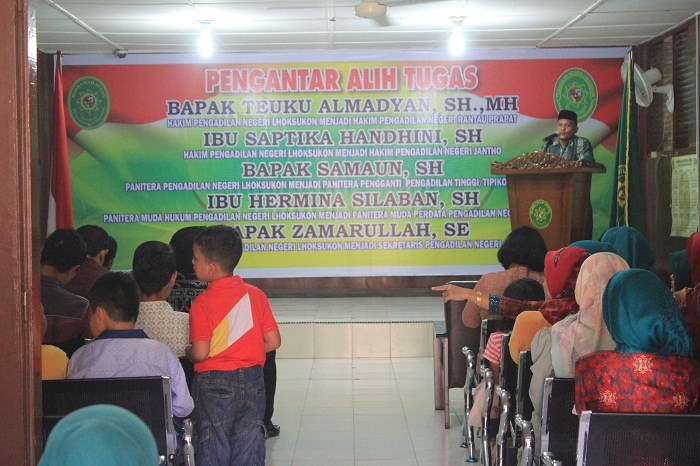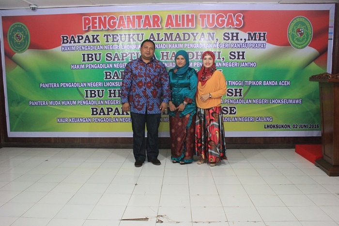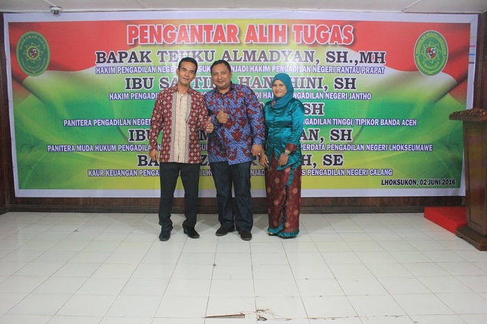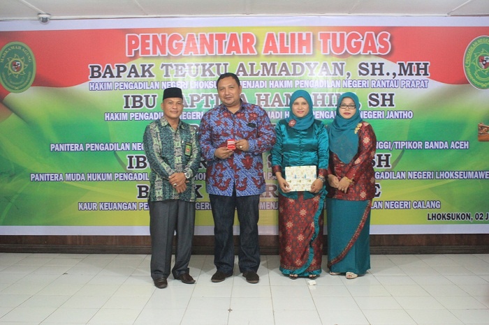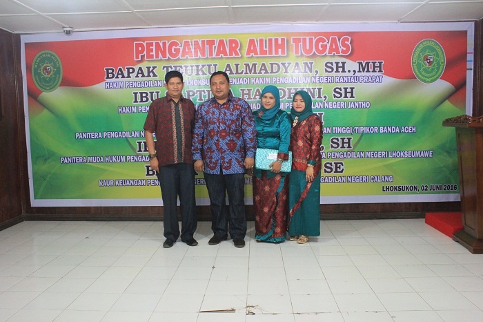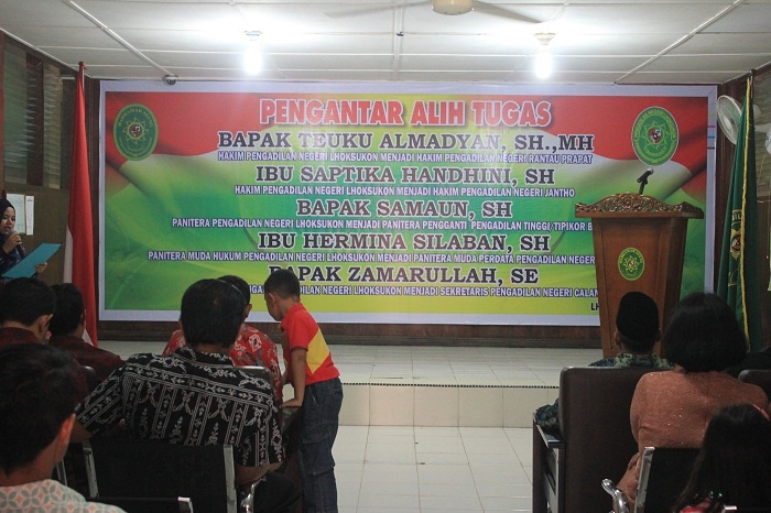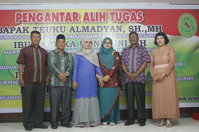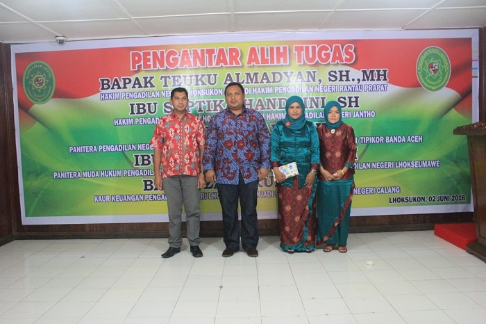 Lhoksukon - Kamis pada tanggal 02 Juni Keluarga Besar Pengadilan Negeri Lhoksukon mengadakan acara Pengantar Alih Tugas para Hakim dan Pegawai yang telah mutasi dari Pengadilan Negeri Lhoksukon. Adapun para Hakim dan Pegawai tersebut yaitu sebagai berikut :